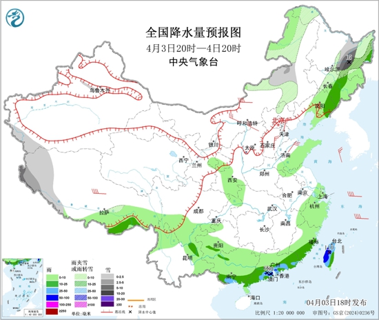中央气象台2026年04月03日18时发布未来三天全国天气预报。详细
